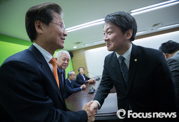| △ 인사 나누는 안철수와 천정배 |