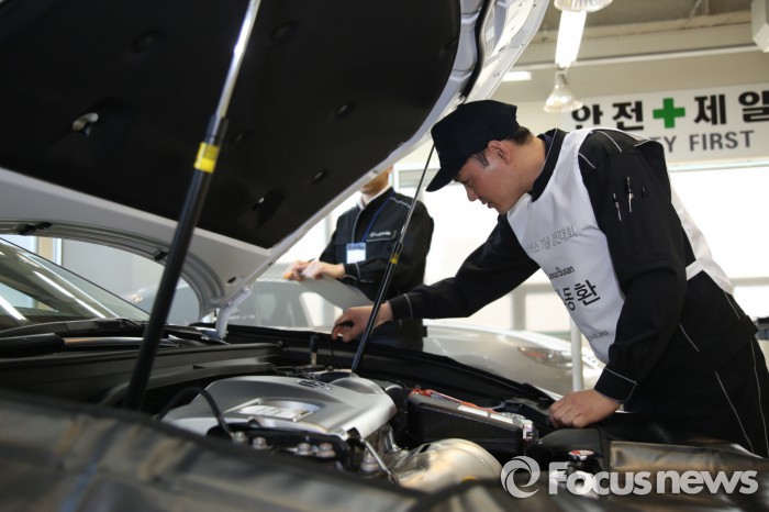 최종 우승자인 '렉서스 서비스 왕중왕' 5명은 오는 10월 일본에서 열리는 토요타자동차의 '세계 고객 서비스 챔피언십'에 참가하게 된다.제11회 렉서스 고객서비스 기술경진대회에 참가한 경연자가 차량을 점검하고 있다. <사진제공=한국토요타> 2016.1.27. 김현이 인턴기자