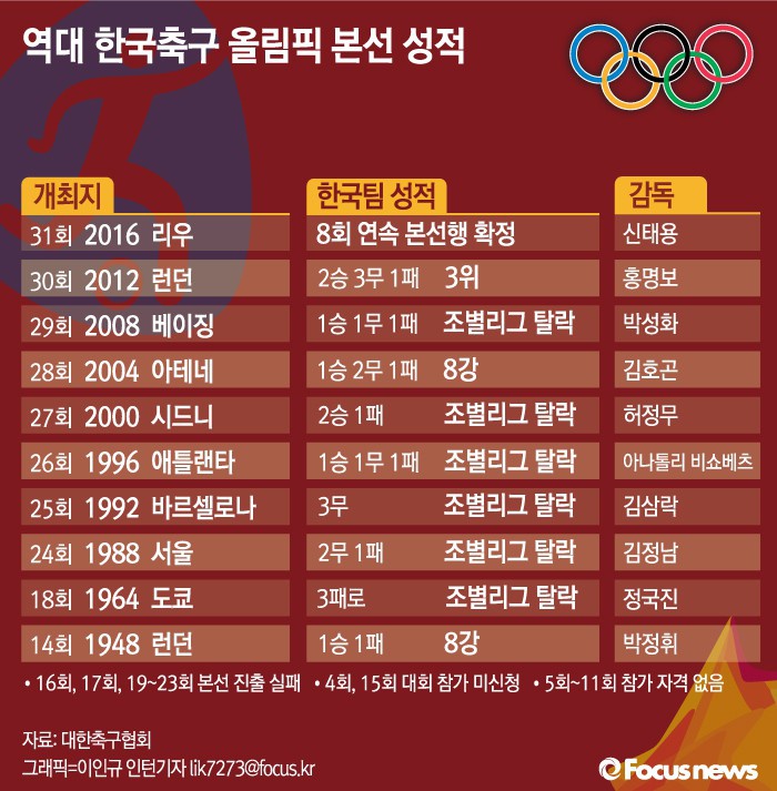 | △ [그래픽] 역대 한국축구 올림픽 본선 성적 |