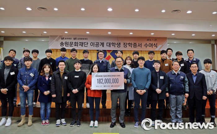 (서울=포커스뉴스) 동국제강 산하 송원문화재단은 27일 전국 10개 대학 33명의 이공계 대학생에게 총 1억8200만원의 장학금을 전달했다고 밝혔다.