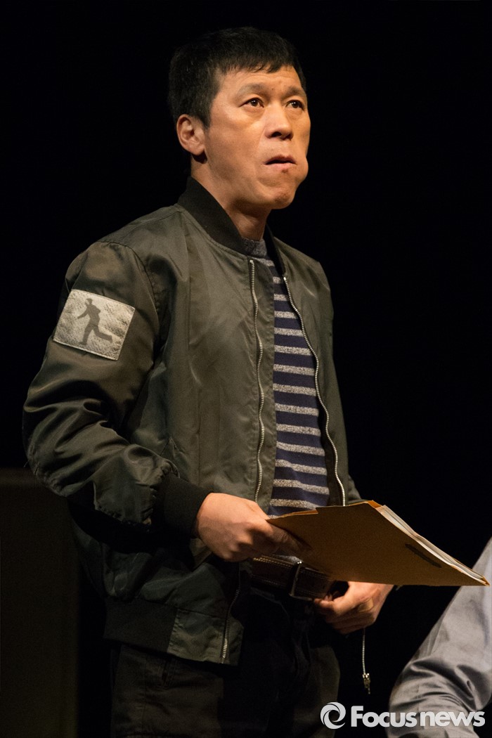 (서울=포커스뉴스) 27일 오전 서울 중구 명동예술극장에서 열린 연극 '날 보러와요' 프레스콜에 배우 김뢰하(조형사)가 연기하고 있다.