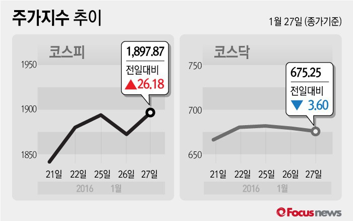 27일 코스피는 전 거래일 대비 26.18포인트(1.40%) 상승한 1897.87에 장을 마쳤다.
