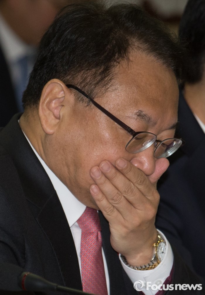 (서울=포커스뉴스) 28일 오전 서울 종로구 정부서울청사에서 열린 국가정책조정회의에 참석한 유일호 경제부총리 겸 기획재정부 장관이 기침을 하고 있다.