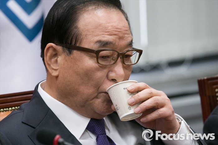(서울=포커스뉴스) 서청원 새누리당 최고위원이 28일 오전 서울 여의도 국회에서 열린 최고위원회의에 참석해 물을 마시고 있다.