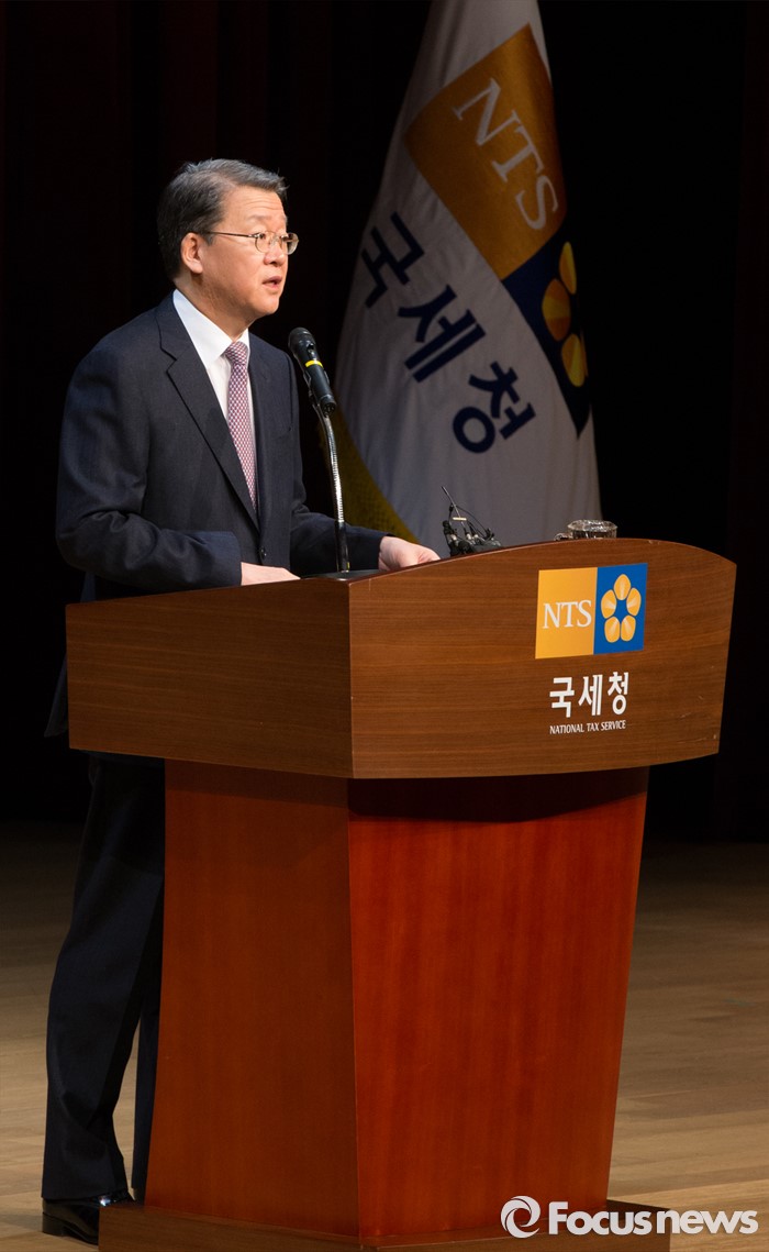 (세종=포커스뉴스) 임환수 국세청장이 28일 오전 세종시 정부세종2청사 국세청에서 열린 전국세무관서장회의에 참석해 당부말을 전하고 있다.