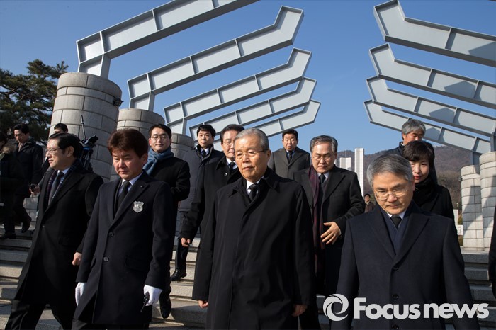 (서울=포커스뉴스) 28일 오전 서울 강북구 국립 4.19 묘지에서 김종인 선거대책위원장 겸 비대위원장이 사월 학생 혁명 기념탑 참배를 마치고 떠나고 있다.