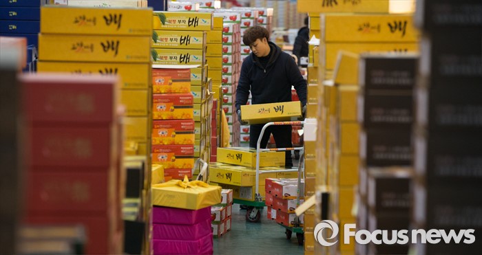 (대전=포커스뉴스) 설 멸정을 앞두고 28일 오전 대전 유성구 농수산물도매시장에서 상인들이 대목준비에 바쁘게 움직이고 있다.