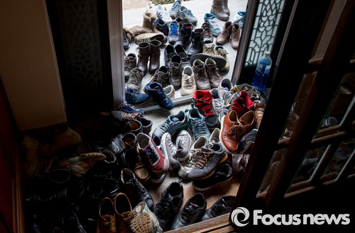 (서울=포커스뉴스) 28일 오전 서울 마포구 평화의 우리집에서 열린 일본군'위안부' 문제합의 관련, 유엔 청원서 제출 기자회견에 취재진의 신발이 가득 모여 있다.
