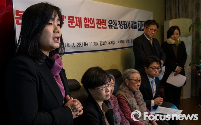 (서울=포커스뉴스) 28일 오전 서울 마포구 평화의 우리집에서 열린 일본군'위안부' 문제합의 관련, 유엔 청원서 제출 기자회견에 참석한 윤미향 한국정신대문제대책협의회 상임대표가 인사말을 하고 있다.