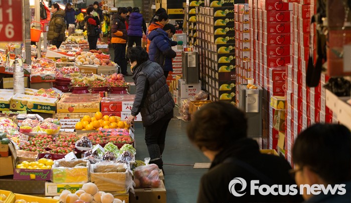 (대전=포커스뉴스) 설 멸정을 앞두고 28일 오전 대전 유성구 농수산물도매시장에서 상인들이 대목준비에 바쁘게 움직이고 있다.