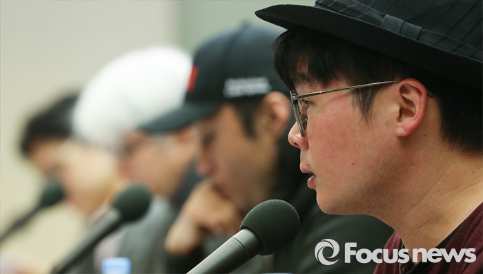 (서울=포커스뉴스) 28일 오전 서울 중구 프레스센터에서 열린 '제13회 한국대중음악상 기자회견' 에 참석한 김작가(오른쪽) 선정위원이 취재진의 질문에 답하고 있다.