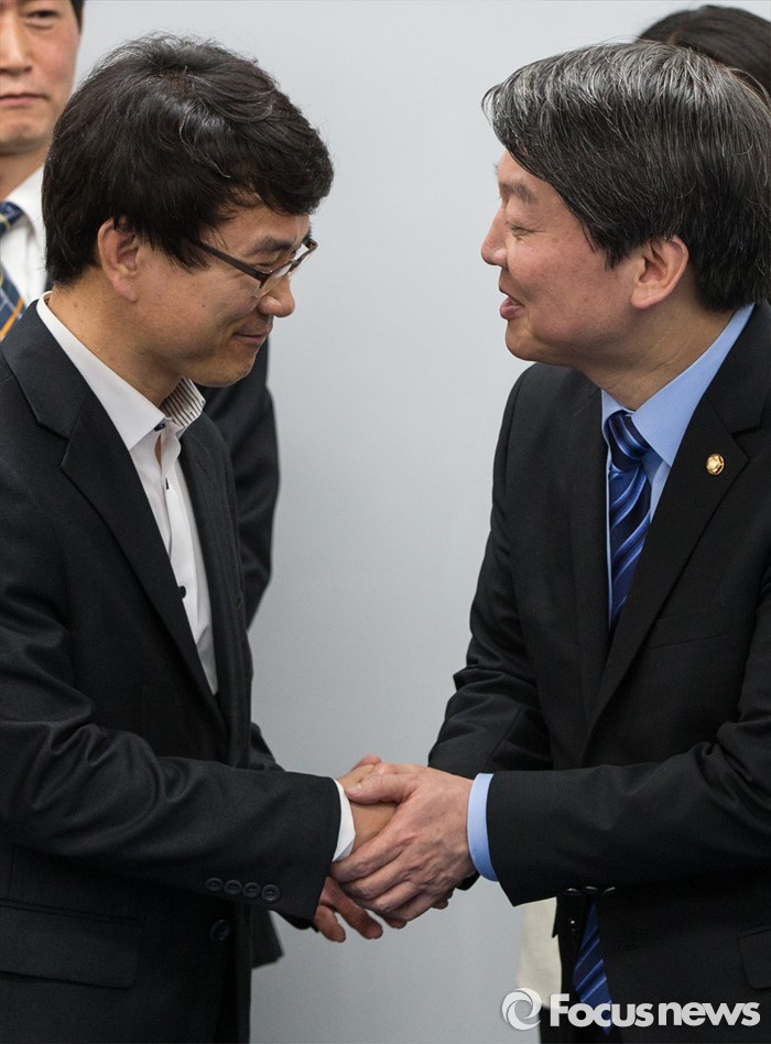 | △ 악수하는 안철수-유철종 |
