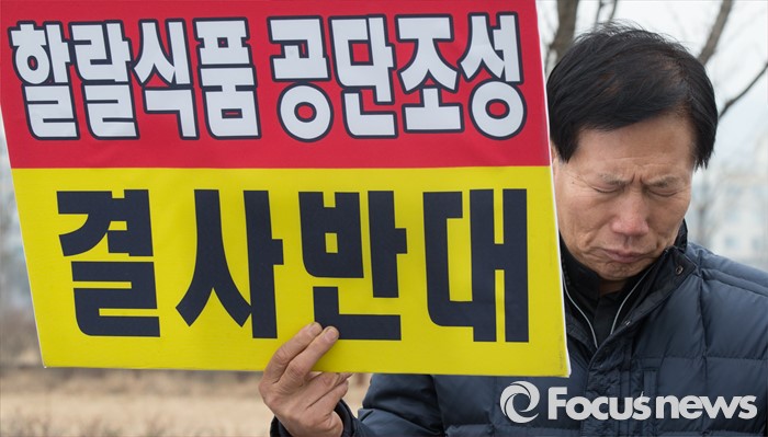 (세종=포커스뉴스) 28일 오후 세종시 정부세종청사 1동 앞에서 한국기독교총연합회, 한국교회연합회, 한국장로교총연합회, 한국교회언론회 등 종교인들이 집회를 갖고 할랄식품 테마단지 추진을 중단할 것을 촉구하고 있다.