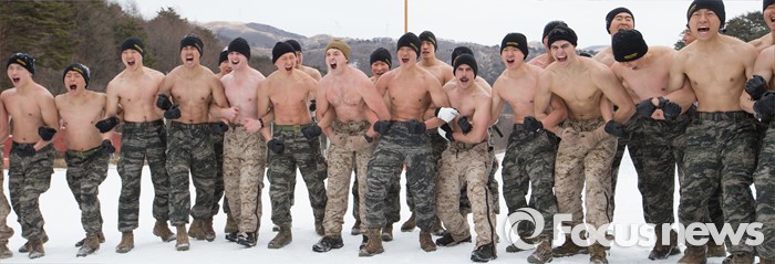 (평창=포커스뉴스) 28일 강원도 평창군 황병산 해병대 산악 종합훈련장에서 열린 '한·미 해병대 연합 동계 설한지 훈련'에 해병대 수색대대와 미 해병대 3사단 수색중대 장병들이 참가하고 있다.