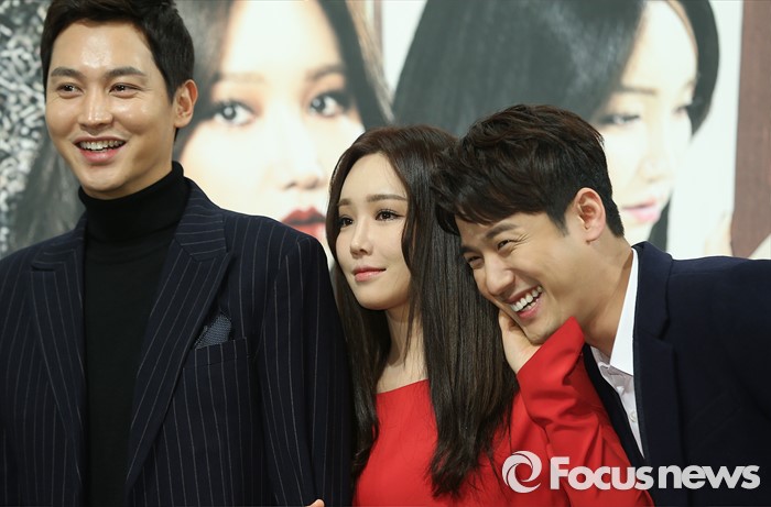 (서울=포커스뉴스) 28일 오후 서울 강남구 임피리얼 팰리스 호텔에서 열린 KBS 2TV 저녁 일일드라마 '천상의 약속' 제작발표회에 참석한 배우 송종호(왼쪽부터), 이유리, 서준영이 포토타임을 갖고 있다.