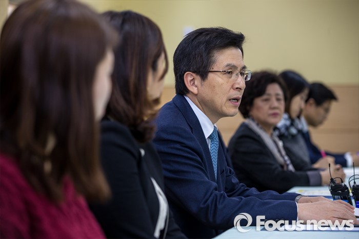 (서울=포커스뉴스) 만3-5세 유아에게 공통적으로 제공하는 교육, 보육 과정인 누리과정 예산 파행으로 보육대란이 이어지고 있는 28일 오후 서울 종로구 한 어린이집을 찾은 황교안 국무총리가 교사들과 간담회에 앞서 인사말을 하고 있다.