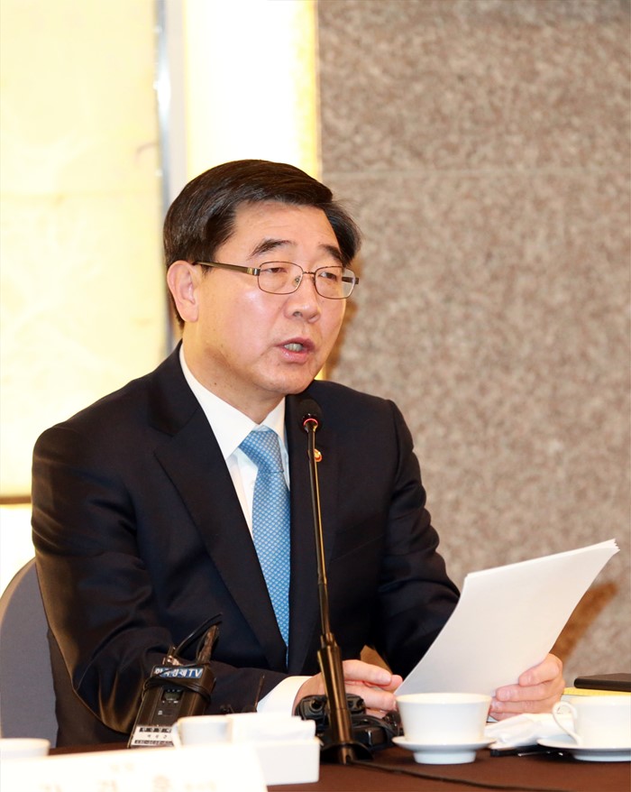 (서울=포커스뉴스) 이기권 고용노동부 장관이 28일 오전 서울 중구 프라자 호텔에서 30대 기업 인사노무담당총괄임원(CHO)들을 만나 간담회를 갖고 노동개혁 관련 의견 청취를 하고 있다. <사진제공=고용노동부>