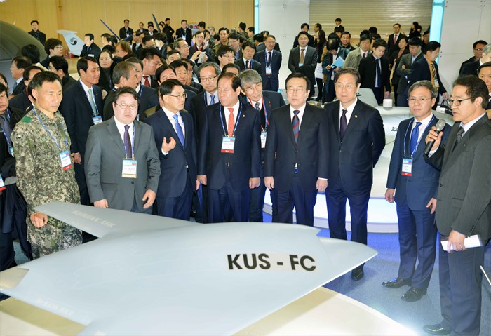 (부산=포커스뉴스) 이관섭 산업통상자원부 1차관이 28일 부산 벡스코에서 열린 2016 드론쇼 코리아(Drone Show Korea 2016)개막식에 참석해 전시물을 관람하고 있다. <사진제공=산업통산자원부>