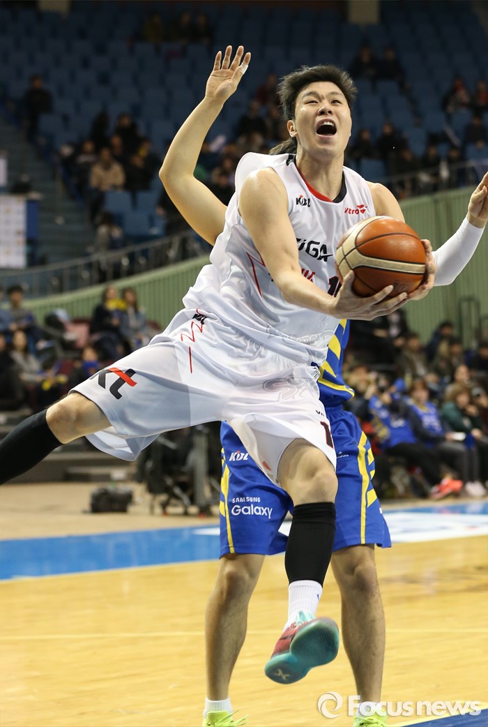 (서울=포커스뉴스) 28일 서울 잠실실내체육관에서 열린 2015-2016 프로농구 삼성-KT 경기에서 KT 조성민이 삼성 박재현의 저지를 뚫고 레이업슛을 시도하고 있다.