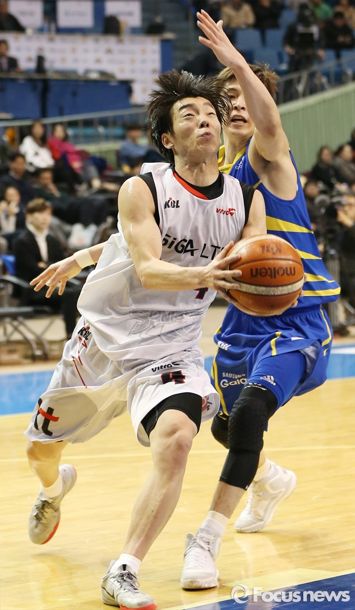 (서울=포커스뉴스) 28일 서울 잠실실내체육관에서 열린 2015-2016 프로농구 삼성-KT 경기에서 KT 이재도가 삼성 이호현을 제치며 골밑으로 돌파하고 있다.