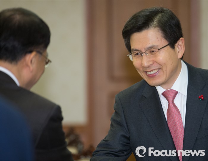 (서울=포커스뉴스) 29일 오전 서울 종로구 정부서울청사에서 열린 제7차 국민안전민관합동회의에 자리한 황교안(오른쪽) 국무총리가 참석자와 인사를 나누고 있다.