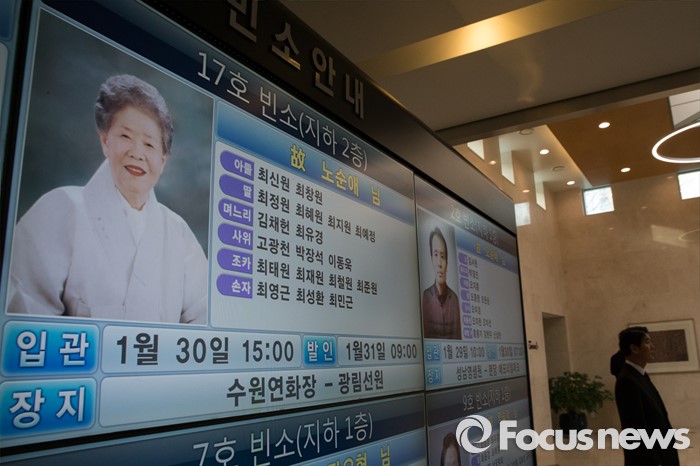 (서울=포커스뉴스) 29일 오전 서울 강남구 삼성서울병원 장례식장에 고 최종건 SK그룹 창업주 부인 노순애 여사의 빈소가 마련되어 있다.