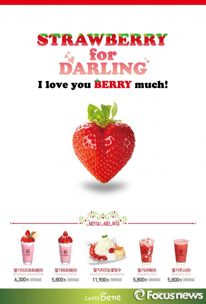 (서울=포커스뉴스) 카페베네는 다가오는 봄을 맞아 딸기로 만든 ‘스트로베리 포 달링(Strawberry for Darling)’ 시즌메뉴 5종을 29일 출시했다.