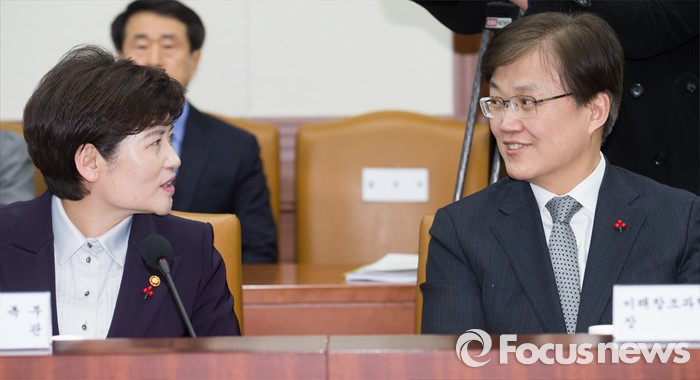 | △ 대화 나누는 강은희 장관-최양희 장관 |