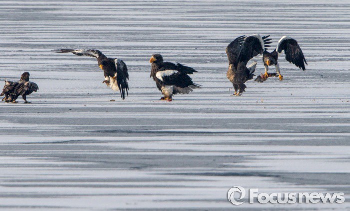 (하남=포커스뉴스) 국제희귀조 참수리( 멸종위기종1급. 천연기념물243호) 4 마리가 28~29일 경기도 하남시 미사리 한강변에 동시에 나타나 조류애호가들을 흥분 시키고 있다.