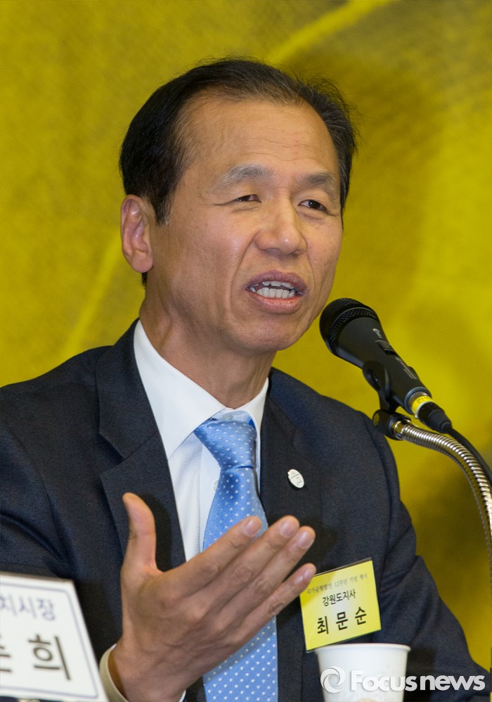 (세종=포커스뉴스) 29일 오후 세종시 정부세종컨벤션센터 국제회의장에서 열린 국가균형발전선언 12주년 기념행사 및 심포지움에 참석한 최문순 강원지사가 인사말을 하고 있다.