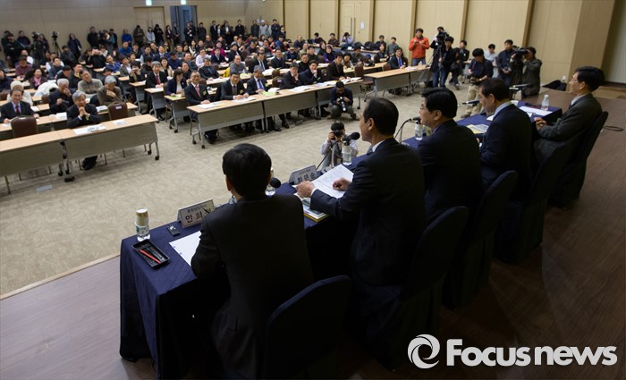 (세종=포커스뉴스) 29일 오후 세종시 정부세종컨벤션센터 국제회의장에서 열린 국가균형발전선언 12주년 기념행사 및 심포지움에 참석한 최문순 강원지사가 인사말을 하고 있다. 오른쪽부터 성경륭 한림대교수, 박원순 서울시장, 이춘희 세종시장, 최문순 강원지사, 안희정 충남지사.