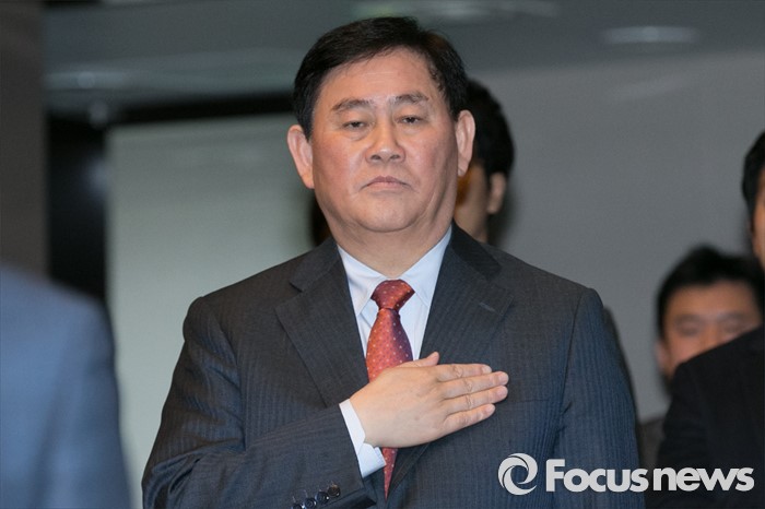 (서울=포커스뉴스) 최경환 전 경제부총리가 29일 오후 서울 여의도 국회에서 열린 새누리당 의원총회에 참석해 국민의례를 하고 있다.