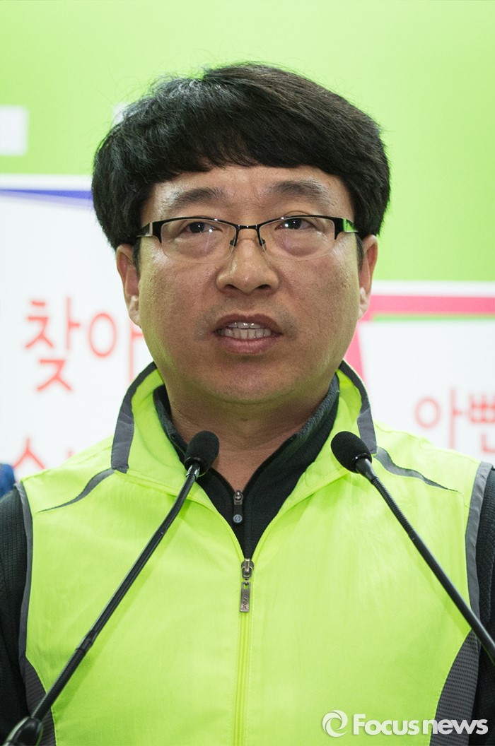 (서울=포커스뉴스) 시설관리원 배성춘씨가 29일 오후 서울 마포구 국민의당 당사에서 입당 기자회견을 하고 있다.