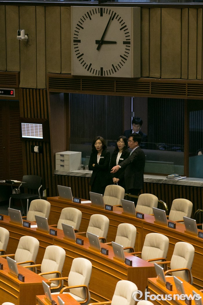 (서울=포커스뉴스) 29일 오후 서울 여의도 국회 본회의장 의원석이 예정된 본회의 개의 시간을 훌쩍 넘기고도 텅 비어 있다. 이날 여야는 본회의를 열어 기업활성화법(일명 '원샷법')을 통과 시키기로 했으나, 최종협상에서 난항을 겪고 있는 것으로 알려졌다.