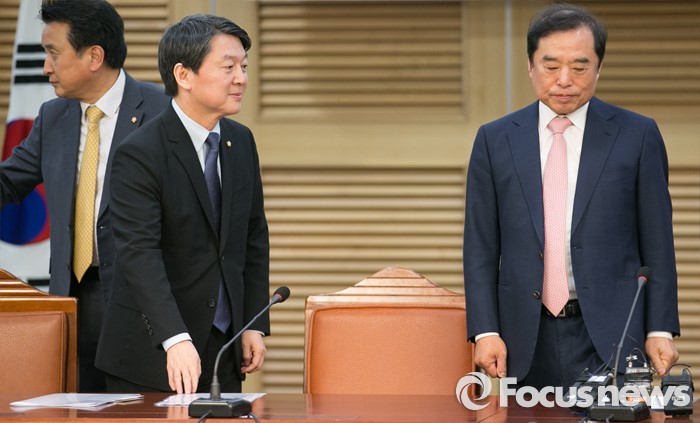 (서울=포커스뉴스) 29일 오후 서울 여의도 국회 의원회관에서 열린 '참여정부 시절 청와대 정책실장을 지낸 김병준 국민대 교수 초청 간담회, 한국정치 제3의 길을 말한다'에 참석한 안철수 국민의당 인재영입위원장과 김 교수가 참석하고 있다.