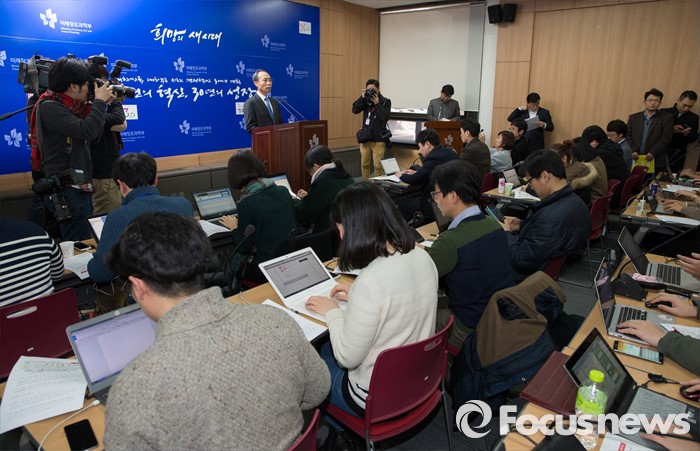 (과천=포커스뉴스) 29일 오후 경기 정부과천청사 미래창조과학부에서 조규조 통신정책국 국장이 제4이동통신 심사 결과를 발표하고 있다.