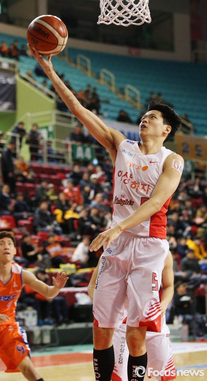 (인천=포커스뉴스) 29일 인천 삼산체육관에서 열린 2015-2016 프로농구 전자랜드-SK 경기에서 SK 김선형이 레이업슛을 시도하고 있다.