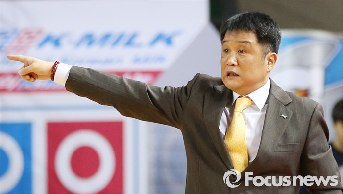 (인천=포커스뉴스) 29일 인천 삼산체육관에서 열린 2015-2016 프로농구 전자랜드-SK 경기에서 전자랜드 유도훈 감독이 손가락을 펴 보이면서 작전을 지시하고 있다.