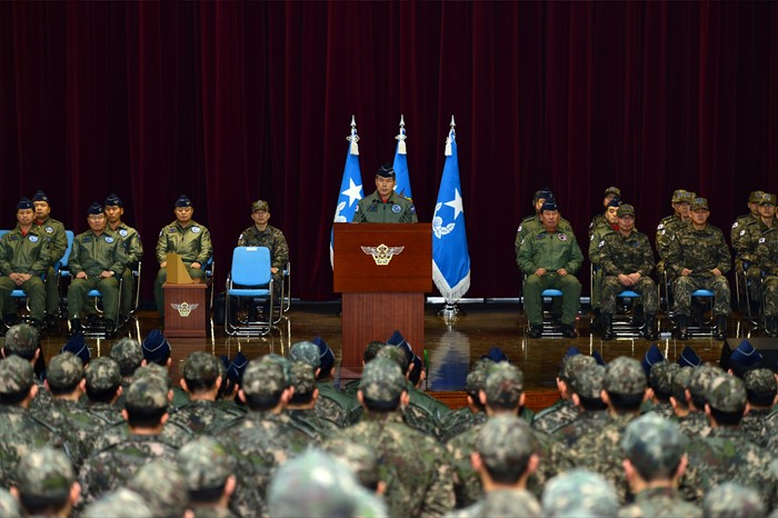 (서울=포커스뉴스) 29일 충북 충주시 19전투비행단에서 열린 '2015년 안전 우수부대 시상식'에서 정경두 공군참모총장이 인사말을 하고 있다. <사진제공=공군>