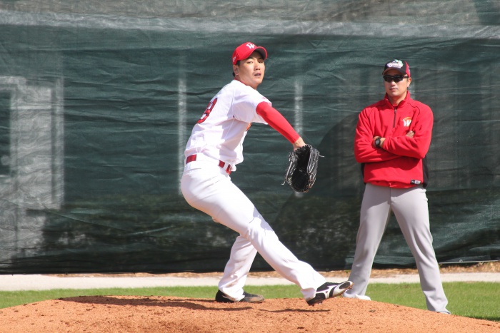 김광현은 미국 플로리다 베로비치의 히스토릭 다저타운에서 진행 중인 전지훈련에서 30일(한국시간) 처음 불펜 마운드에 섰다. 올 전지훈련 김광현의 첫 불펜투구였다.