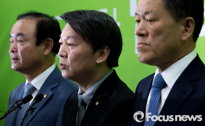 (서울=포커스뉴스) 31일 오전 서울 마포구 국민의당 당사에서 국민의당 안철수(가운데) 의원이 국회 파행에 관한 입장을 표명하고 있다. 왼쪽부터 장병완 정책위의장, 안 의원, 주승용 원내대표.