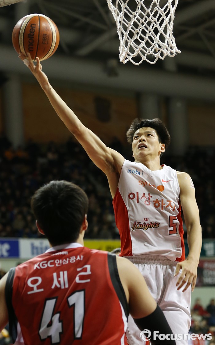 (안양=포커스뉴스) 31일 안양실내체육관에서 열린 2015-2016 프로농구 KGC-SK 경기에서 SK 김선형이 레이업슛을 시도하고 있다.