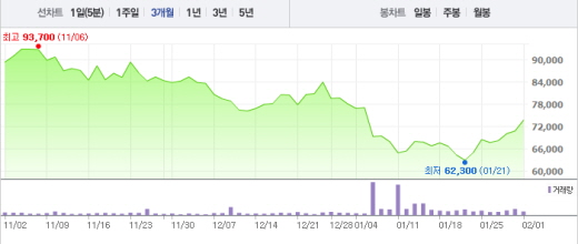 1일 오전 10시45분 현재 한국항공우주는 전거래일보다 4.10%(2900원) 오른 7만3700원에 거래되고 있다.