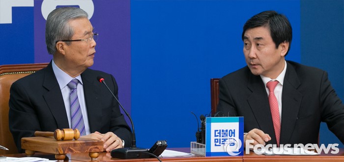 이어 "원샷법과 함께 통과시키려고하는 우리 나름대로의 경제활성화 법이 있다. 그것이 바로 중소기업-대기업 상생법"이라며 "중소기업을 살릴 수 있는 상생법을 새누리당에 원샷법과 함께 통과시키자고 하고 있다. 그런데 새누리당은 안 된다고 하고 있다"고 지적했다.김종인(왼쪽) 더불어민주당 비대위원장과 이종걸 원내대표가 1일 오전 서울 여의도 국회에서 열린 비상대책위원회의에 참석해 대화하고 있다. 2016.02.01 박동욱 기자