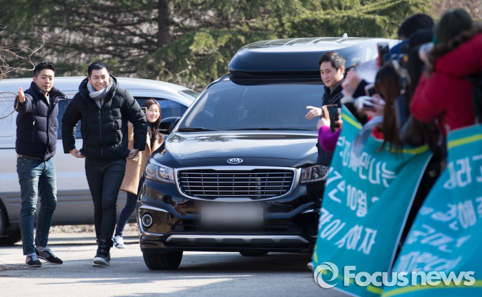 (논산=포커스뉴스) 가수 겸 배우 이승기가 1일 오후 충남 논산 육군훈련소 앞에서 입소하기 전 팬들을 향해 미소를 짓고 있다.