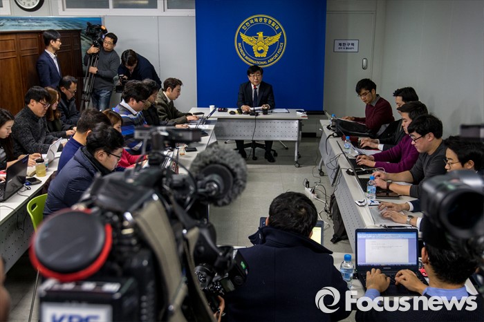 (인천공항=포커스뉴스) 인천국제공항에 폭발물 의심 물체와 함께 아랍어로 된 협박성 메모가 발견된 사건 수사가 진행되고 있는 1일 오후 인천공항경찰대에서 정성채 인천공항경찰대장이 사건 관련 브리핑을 하고 있다.