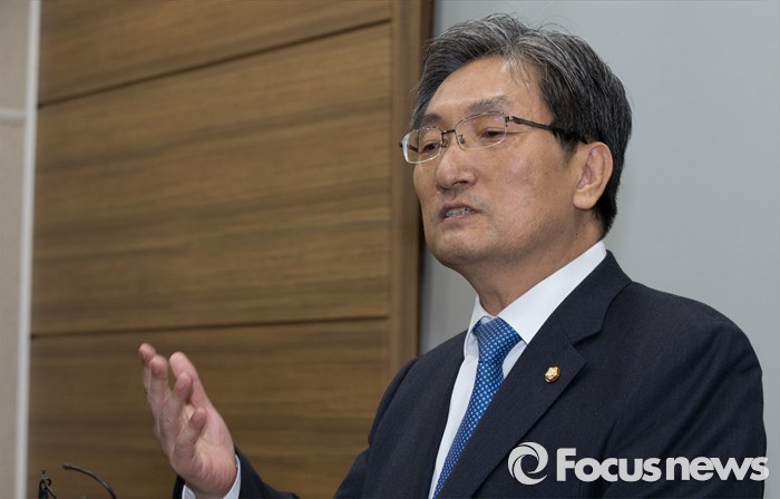 (청주=포커스뉴스) 노영민 더불어민주당 의원이 1일 오후 충북 청주 충북도청 기자실에서 4.13 총선 불출마 선언 기자회견을 하고 있다.