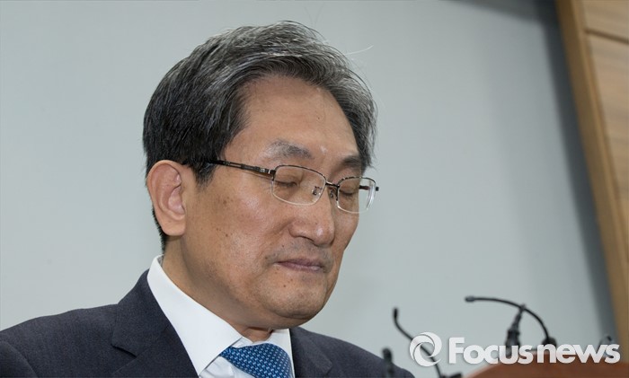 (청주=포커스뉴스) 노영민 더불어민주당 의원이 1일 오후 충북 청주 충북도청 기자실에서 4.13 총선 불출마 선언 기자회견을 하고 있다.