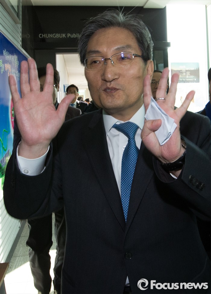 (청주=포커스뉴스) 노영민 더불어민주당 의원이 1일 오후 충북 청주 충북도청 기자실에서 4.13 총선 불출마 선언 기자회견을 마치고 기자회견장을 나서고 있다.