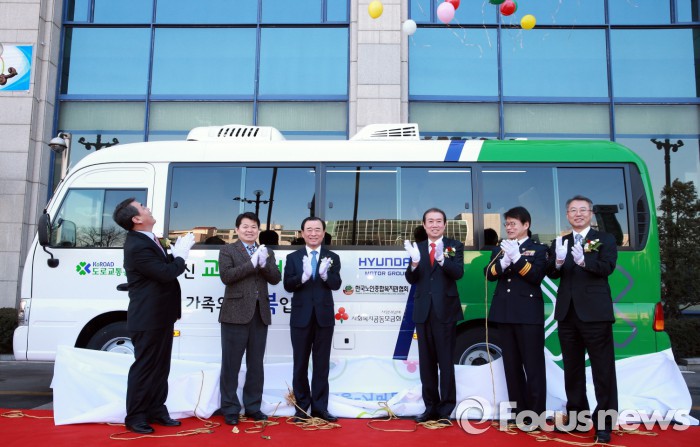 이 외에도 △교통안전퀴즈대회 △시니어 안전운전 경연대회 등을 진행할 예정이다.왼쪽부터 강학봉 사회복지공동모금회 모금사업본부장, 이호경 한국노인종합복지관협회 회장, 박광식 현대자동차그룹 부사장, 신용선 도로교통공단 이사장, 임호선 경찰청 교통국장, 정철수 도로교통공단 교육본부장이 교통안전교육 버스 전달식을 갖고 있다. <사진제공=현대차그룹>